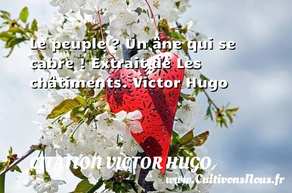 4.3/5 - (9 votes) Le peuple ? Un âne qui se cabre ! Extrait de Les châtiments. Victor Hugo A lire Soyez le maître PARTAGER