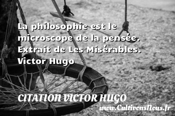 4.5/5 - (6 votes) La philosophie est le microscope de la pensée. Extrait de Les Misérables. Victor Hugo A lire Le possible PARTAGER