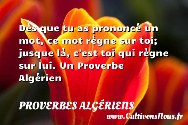 Evaluer cet article Dès que tu as prononcé un mot, ce mot règne sur toi; jusque là, c’est toi qui règne sur lui. Un Proverbe Algérien A lire A toi la galette très fine, à moi PARTAGER Tags: Proverbes philosophiques