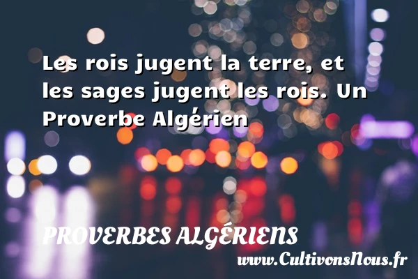 Evaluer cet article Les rois jugent la terre, et les sages jugent les rois. Un Proverbe Algérien A lire La justice du prince importe plus au peuple PARTAGER Tags: Proverbes philosophiques