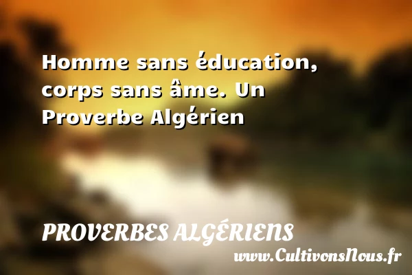 Evaluer cet article Homme sans éducation, corps sans âme. Un Proverbe Algérien A lire Homme sans éducation, PARTAGER Tags: Proverbes éducation
