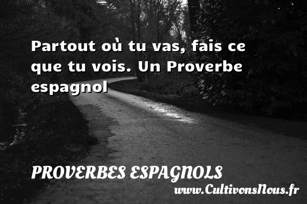Evaluer cet article Partout où tu vas, fais ce que tu vois. Un Proverbe espagnol A lire Il ne faut pas mettre toute sa semence dans le même PARTAGER Tags: Proverbes philosophiques
