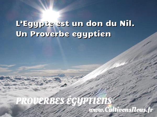 Evaluer cet article L’Egypte est un don du Nil. Un Proverbe egyptien A lire L'amitié est comme le plumage d'un poulet, elle ne s'en PARTAGER Tags: Proverbes philosophiques