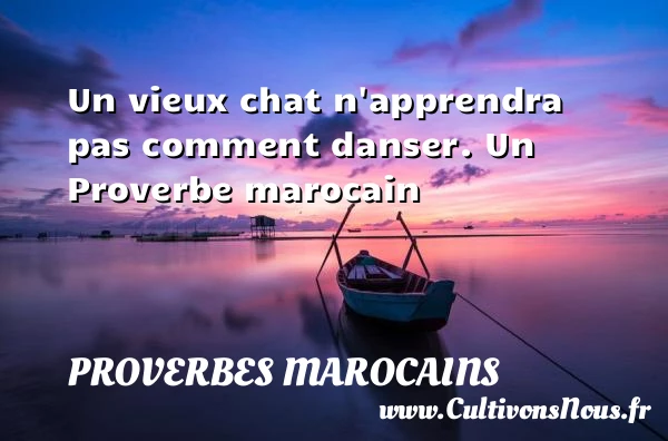 Evaluer cet article Un vieux chat n’apprendra pas comment danser. Un Proverbe marocain A lire Qui possède un commerce prospère, n’a que faire d’un jardin PARTAGER Tags: Proverbes funProverbes philosophiques