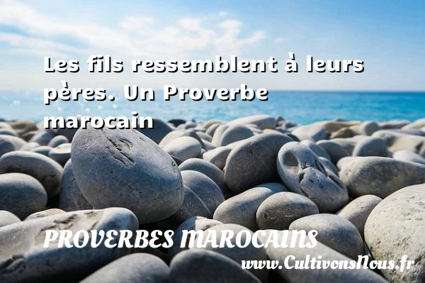 Evaluer cet article Les fils ressemblent à leurs pères. Un Proverbe marocain A lire Lorsqu'on attend après son voisin pour dîner, on dîne bien PARTAGER Tags: Proverbes philosophiques