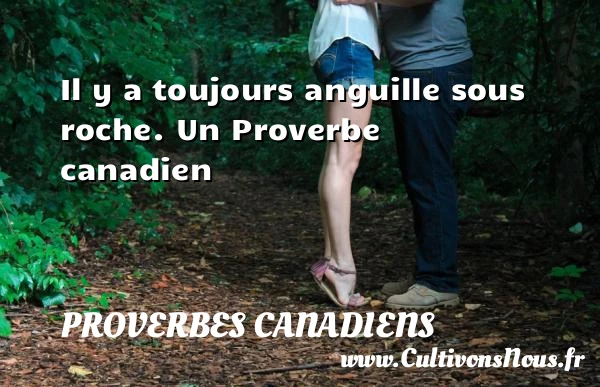 Evaluer cet article Il y a toujours anguille sous roche. Un Proverbe canadien A lire A l'ombre de grands arbres, l'herbe ne pousse PARTAGER Tags: Proverbes philosophiques