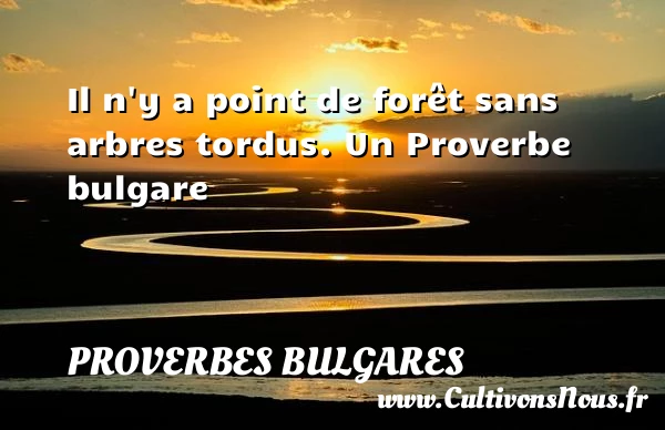 Evaluer cet article Il n’y a point de forêt sans arbres tordus. Un Proverbe bulgare A lire Dieu lui-même n'est pas sans péché puisqu'il a créé le PARTAGER Tags: Proverbes philosophiques