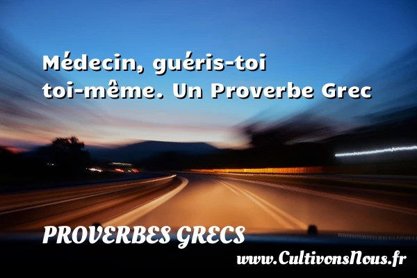 Evaluer cet article Médecin, guéris-toi toi-même. Un Proverbe Grec PARTAGER Tags: Proverbes philosophiques