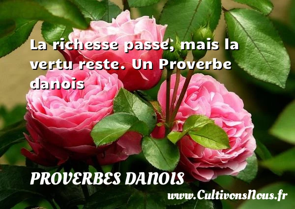 Evaluer cet article La richesse passe, mais la vertu reste. Un Proverbe danois A lire Tu ne peux pas empêcher un coeur d'aimer. PARTAGER Tags: Proverbes philosophiques