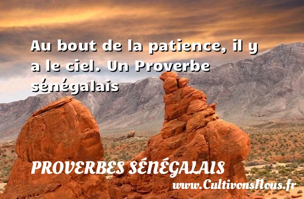 Evaluer cet article Au bout de la patience, il y a le ciel. Un Proverbe sénégalais A lire Qui choisit trop n'aura que les restes. PARTAGER Tags: Proverbes philosophiques