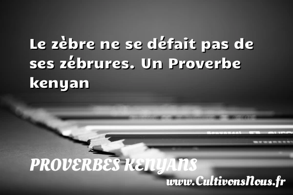 Evaluer cet article Le zèbre ne se défait pas de ses zébrures. Un Proverbe kenyan A lire La terre ne nous a pas été léguée par nos parents, PARTAGER Tags: Proverbes funProverbes philosophiques