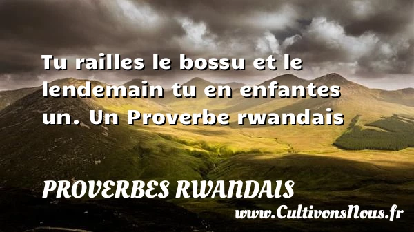 Evaluer cet article Tu railles le bossu et le lendemain tu en enfantes un. Un Proverbe rwandais A lire Un chien devenu adulte ne cesse pas pour autant PARTAGER Tags: Proverbes philosophiques