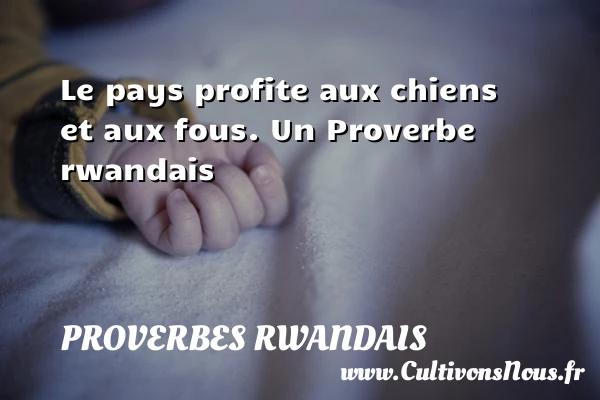 Evaluer cet article Le pays profite aux chiens et aux fous. Un Proverbe rwandais A lire Qui écoute a l’avantage, qui parle, le donne PARTAGER Tags: Proverbes philosophiques
