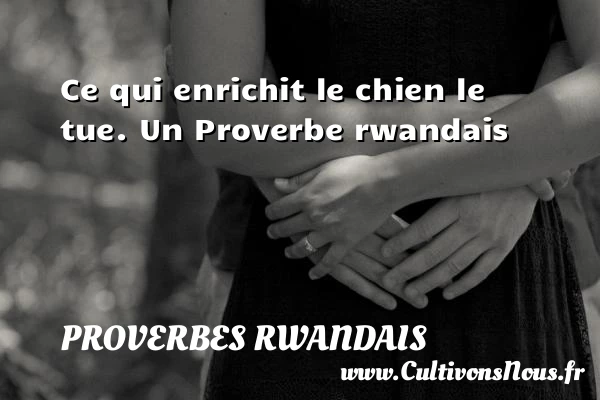 Evaluer cet article Ce qui enrichit le chien le tue. Un Proverbe rwandais A lire Même quand l’eau bout, elle se souvient qu’elle PARTAGER