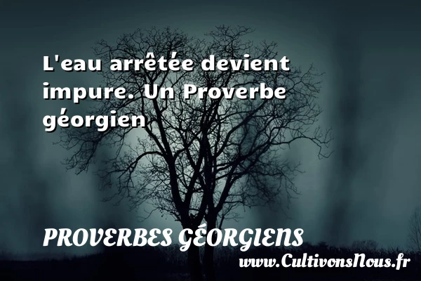 Evaluer cet article L’eau arrêtée devient impure. Un Proverbe géorgien A lire Fierté avec pauvreté, Causent bien des contrariétés. PARTAGER Tags: Proverbes philosophiques