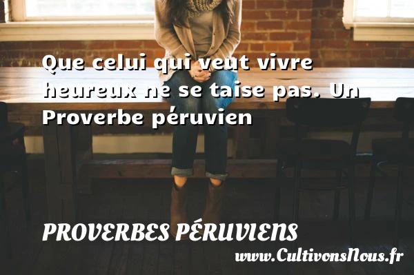 Evaluer cet article Que celui qui veut vivre heureux ne se taise pas. Un Proverbe péruvien A lire Le mieux est l’ennemi du bien. PARTAGER Tags: Proverbes philosophiques