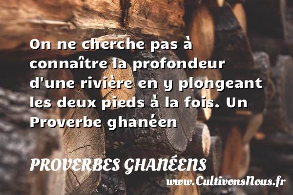 Evaluer cet article On ne cherche pas à connaître la profondeur d’une rivière en y plongeant les deux pieds à la fois. Un Proverbe ghanéen A lire Un oiseau qui jacasse ne construit pas de PARTAGER Tags: Proverbes philosophiques