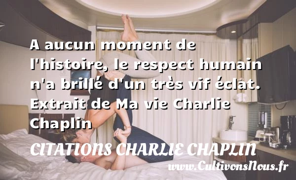 Evaluer cet article A aucun moment de l’histoire, le respect humain n’a brillé d’un très vif éclat. Extrait de Ma vie Charlie Chaplin A lire Je ferai les films que j'aime parce que si j'aime quelque chose PARTAGER Tags: Citation respect