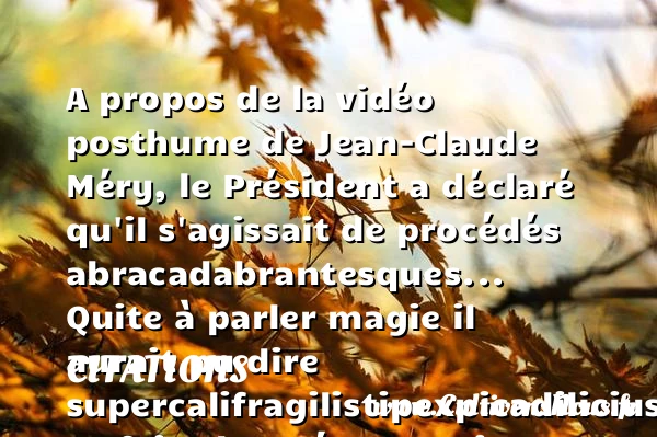 A propos de la vidéo posthume de Jean-Claude Méry, le Président a déclaré qu’il s’agissait de procédés abracadabrantesques… Quite à parler magie il aurait pu dire supercalifragilistipexpicadilicius… ça fait plus Méry Poppins.