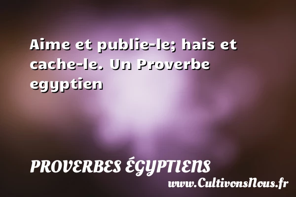 Evaluer cet article Aime et publie-le; hais et cache-le. Un Proverbe egyptien A lire Le Nil, c'est l'Égypte. PARTAGER