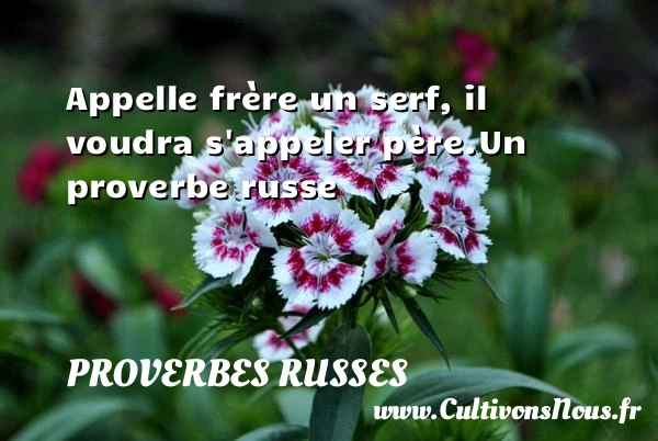 Evaluer cet article Appelle frère un serf, il voudra s’appeler père. Un proverbe russe A lire Sans plat, sans pain, nulle PARTAGER