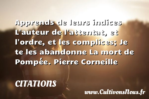 Apprends de leurs indices L’auteur de l’attentat, et l’ordre, et les complices; Je te les abandonne