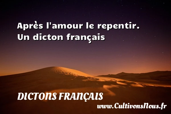 Evaluer cet article Après l’amour le repentir. Un dicton français A lire La meilleure défense c'est PARTAGER
