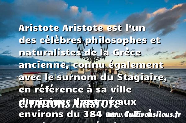 Aristote est l’un des célèbres philosophes et naturalistes de la Grèce ancienne, connu également avec le surnom du Stagiaire, en référence à sa ville d’origine.