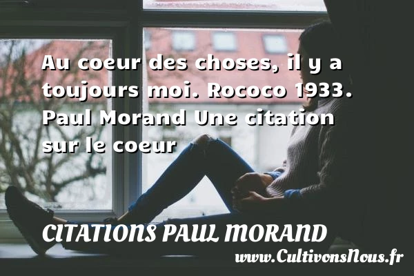 Evaluer cet article Au coeur des choses, il y a toujours moi. Rococo 1933. Paul Morand Une citation sur le coeur A lire A voir ce que l'école exige PARTAGER Tags: Citations coeur