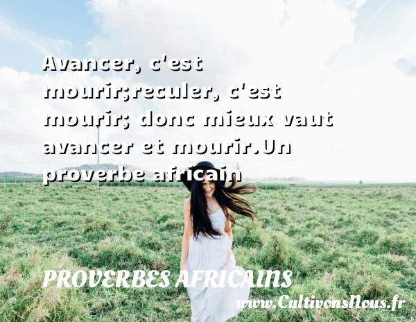 Evaluer cet article Avancer, c’est mourir; reculer, c’est mourir; donc mieux vaut avancer et mourir. Un proverbe africain A lire Si tu portes un vieillard PARTAGER