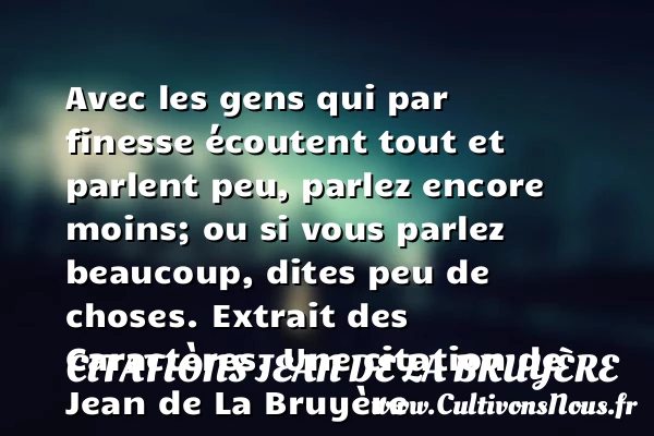 Avec les gens qui par finesse écoutent tout et parlent peu, parlez encore moins; ou si vous parlez beaucoup, dites peu de choses.