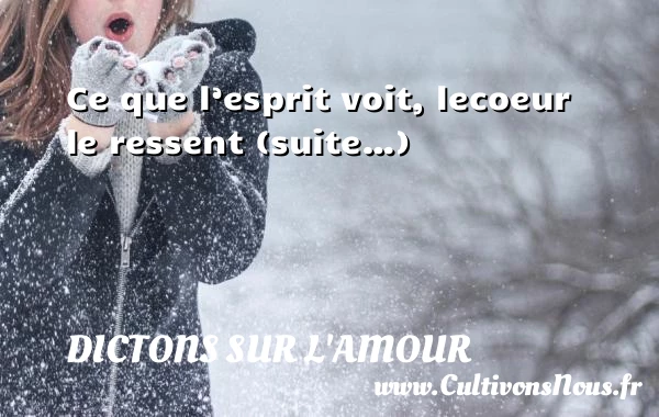 Evaluer cet article Ce que l’esprit voit, le coeur le ressent Dictons citation et proverbe Un dicton sur l’amour A lire Quand je regarde le ciel je PARTAGER