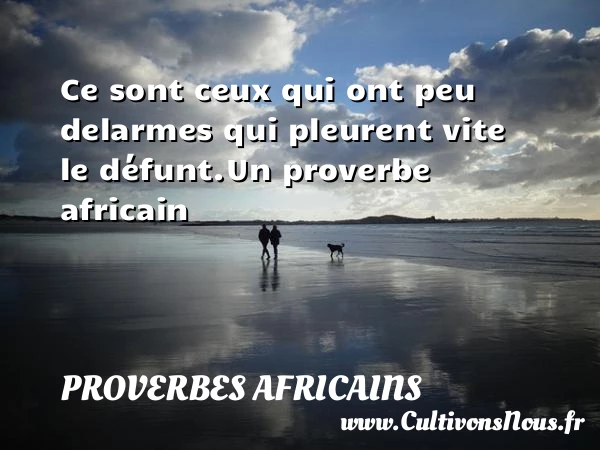 Evaluer cet article Ce sont ceux qui ont peu de larmes qui pleurent vite le défunt. Un proverbe africain A lire Le but de notre voyage, de PARTAGER
