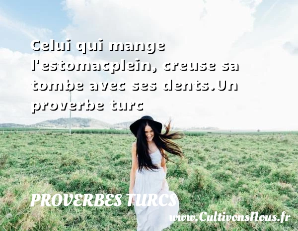 Evaluer cet article Celui qui mange l’estomac plein, creuse sa tombe avec ses dents. Un proverbe turc A lire L'influence d'un mauvais PARTAGER