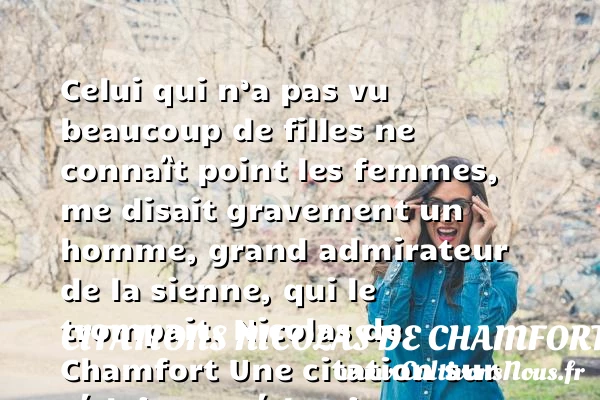 Celui qui n’a pas vu beaucoup de filles ne connaît point les femmes, me disait gravement un homme, grand admirateur de la sienne, qui le trompait.