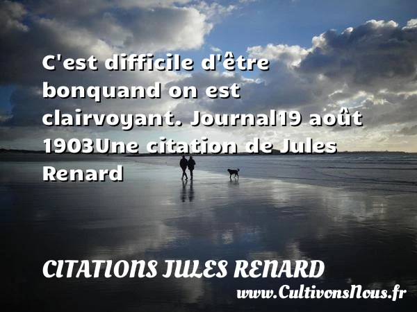 Evaluer cet article C’est difficile d’être bon quand on est clairvoyant. Journal 19 août 1903 Une citation de Jules Renard A lire La vie n'est ni longue PARTAGER