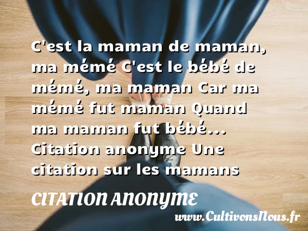 C’est la maman de maman, ma mémé C’est le bébé de mémé, ma maman Car ma mémé fut maman Quand ma maman fut bébé…
