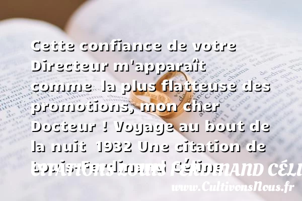 Cette confiance de votre Directeur m’apparaît comme la plus flatteuse des promotions, mon cher Docteur !