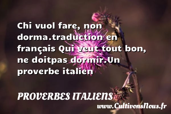 Evaluer cet article Chi vuol fare, non dorma. traduction en français Qui veut tout bon, ne doit pas dormir. Un proverbe italien A lire Un bon prédicateur PARTAGER