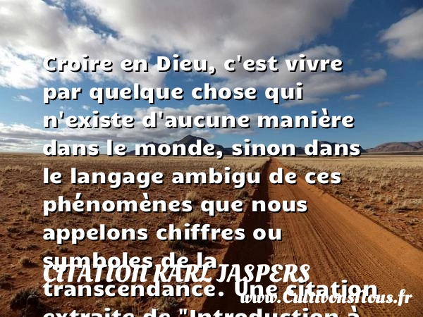 Croire en Dieu, c’est vivre par quelque chose qui n’existe d’aucune manière dans le monde, sinon dans le langage ambigu de ces phénomènes que nous appelons chiffres ou symboles de la transcendance.
