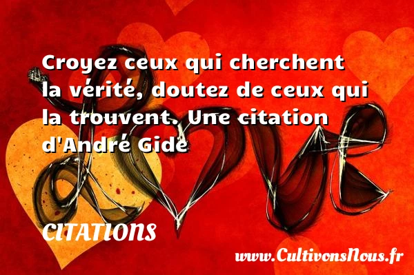 Evaluer cet article Croyez ceux qui cherchent la vérité, doutez de ceux qui la trouvent. Une citation d’André Gide A lire Et, monté sur le faîte, il PARTAGER