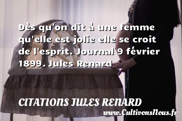 Evaluer cet article Dès qu’on dit à une femme qu’elle est jolie elle se croit de l’esprit. Journal 9 février 1899. Jules Renard A lire Je me repose PARTAGER