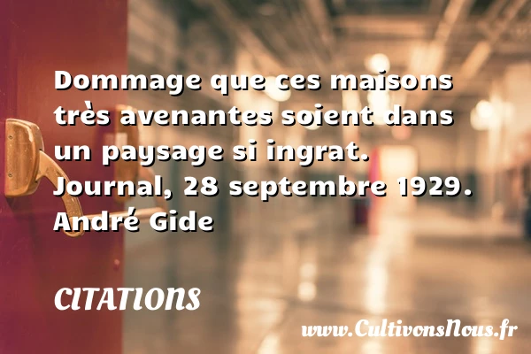 Evaluer cet article Dommage que ces maisons très avenantes soient dans un paysage si ingrat. Journal, 28 septembre 1929. André Gide A lire Maison de la naissance, ô nid, PARTAGER Tags: Citation maison