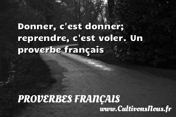 Evaluer cet article Donner, c’est donner; reprendre, c’est voler. Un proverbe français A lire Il ne faut pas PARTAGER Tags: Proverbes donner