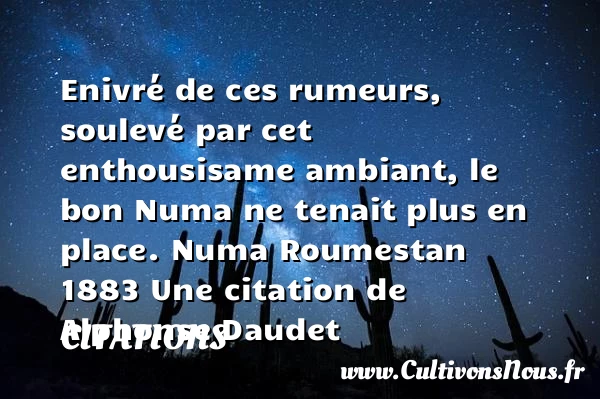 Enivré de ces rumeurs, soulevé par cet enthousisame ambiant, le bon Numa ne tenait plus en place.