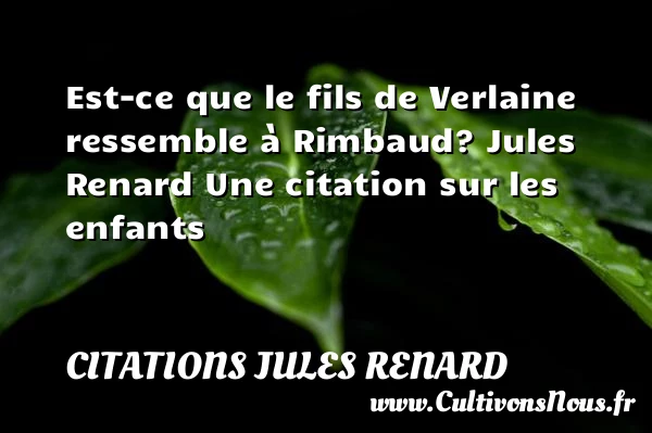 Evaluer cet article Est-ce que le fils de Verlaine ressemble à Rimbaud? Jules Renard Une citation sur les enfants A lire Ô mon fils, sois un jour plus PARTAGER Tags: Citation fils