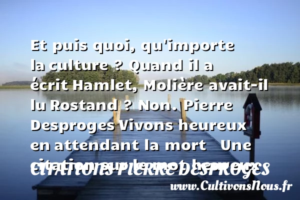 Et puis quoi, qu’importe la culture ? Quand il a écrit Hamlet, Molière avait-il lu Rostand ? Non.