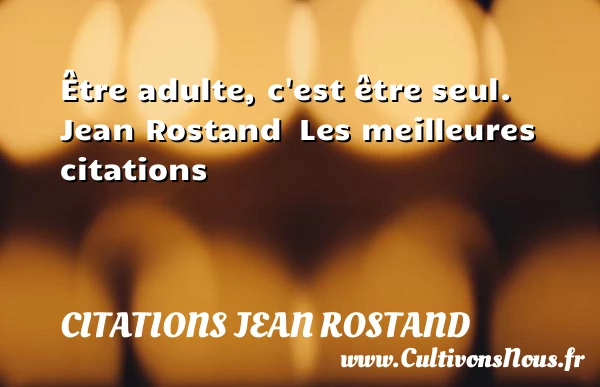Evaluer cet article Être adulte, c’est être seul. Jean Rostand Les meilleures citations A lire Tant qu'il y aura PARTAGER Tags: les meilleures citations