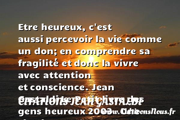 Etre heureux, c’est aussi percevoir la vie comme un don; en comprendre sa fragilité et donc la vivre avec attention et conscience.