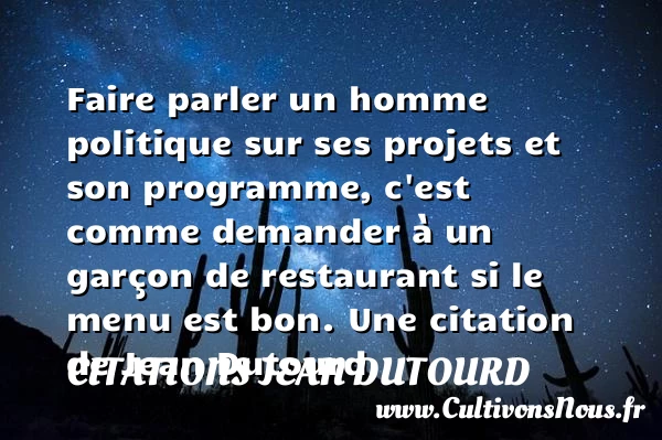 Faire parler un homme politique sur ses projets et son programme, c’est comme demander à un garçon de restaurant si le menu est bon.